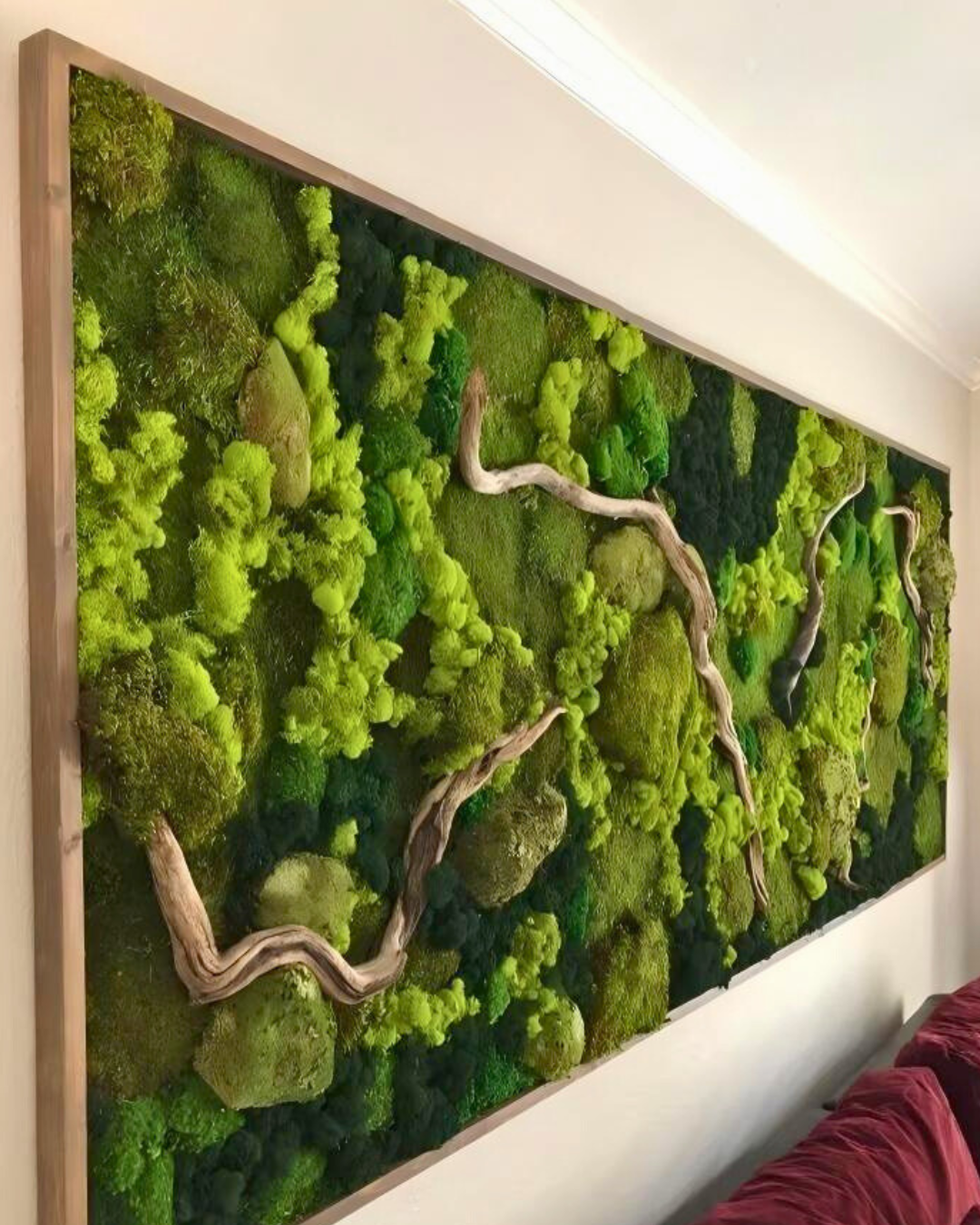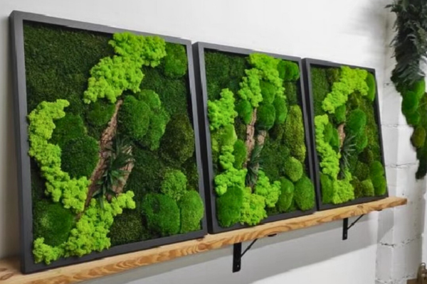 Create serene spaces with preserved floweres or moss walls for stress relief & productivity