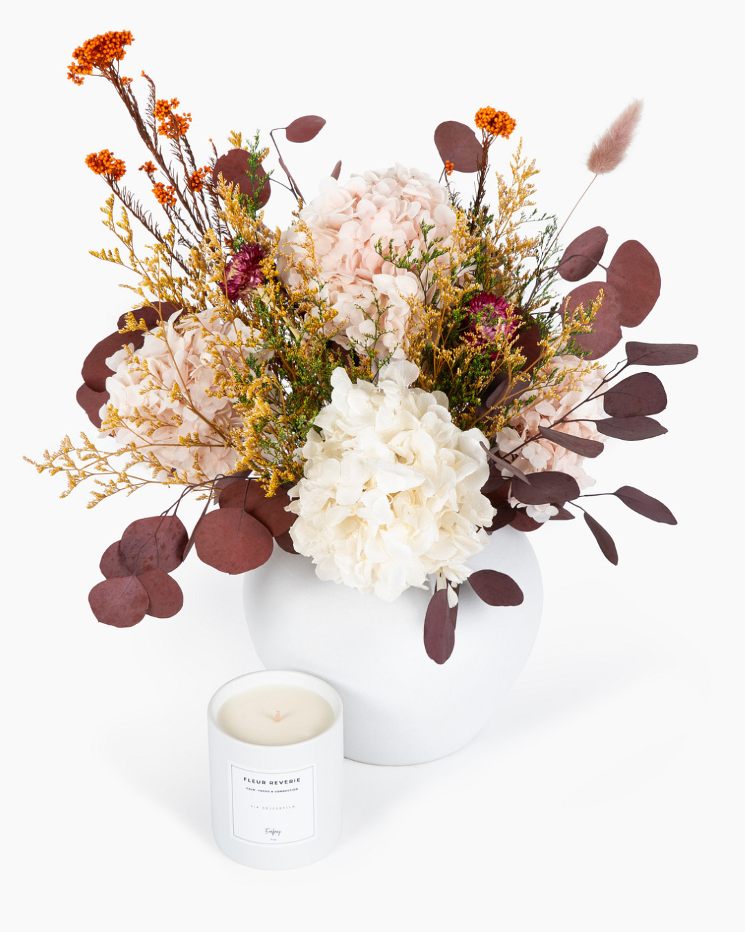 Each arrangement is intentionally crafted from 100% natural, sustainably preserved botanicals to bring lasting beauty and emotional harmony into your space.