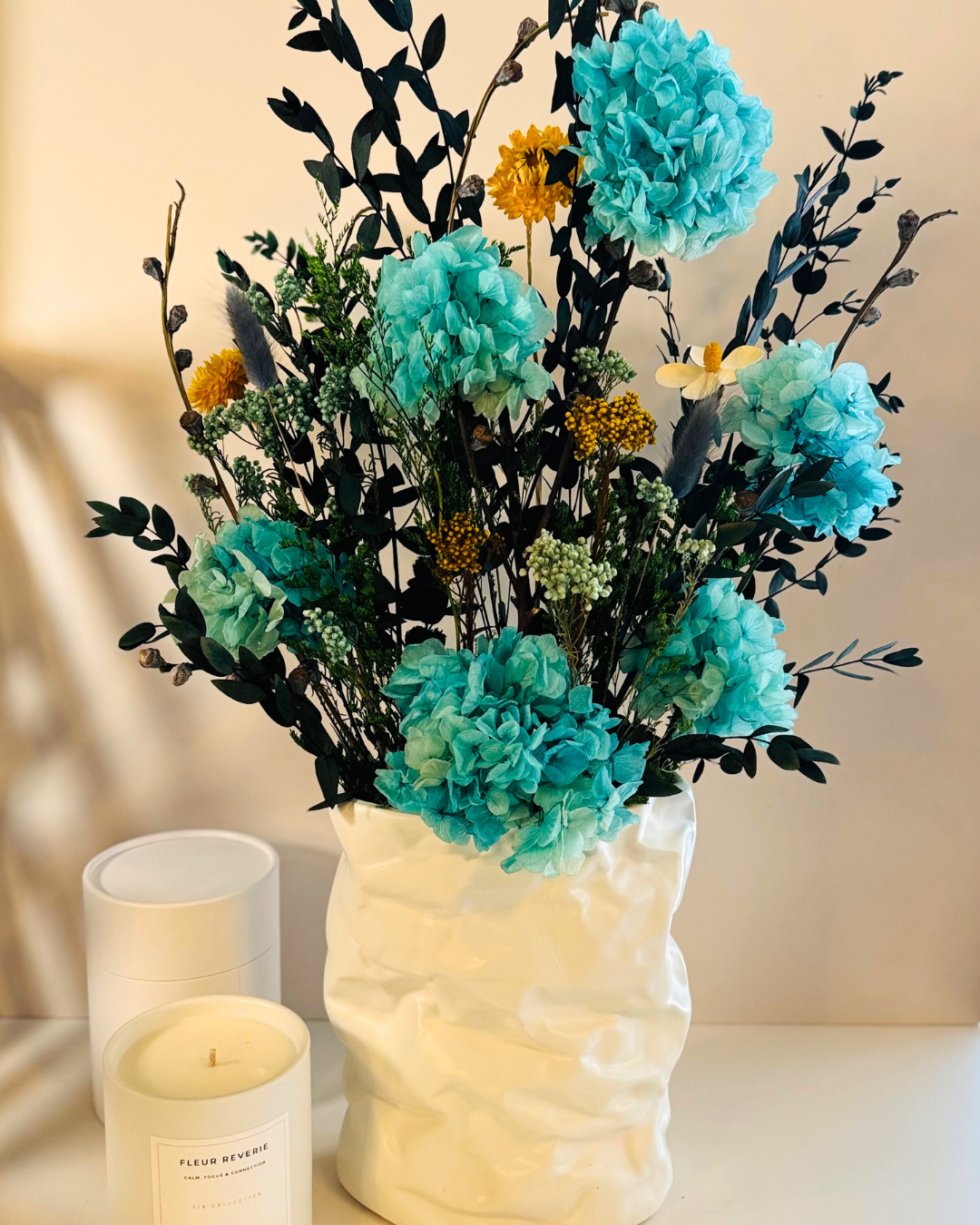 Limited curation of preserved floral designs that feel alive, optimistic, and full of intention. With bright textures, breezy palettes, and sculptural forms, each piece is designed to energize your environment and support clarity in motion.