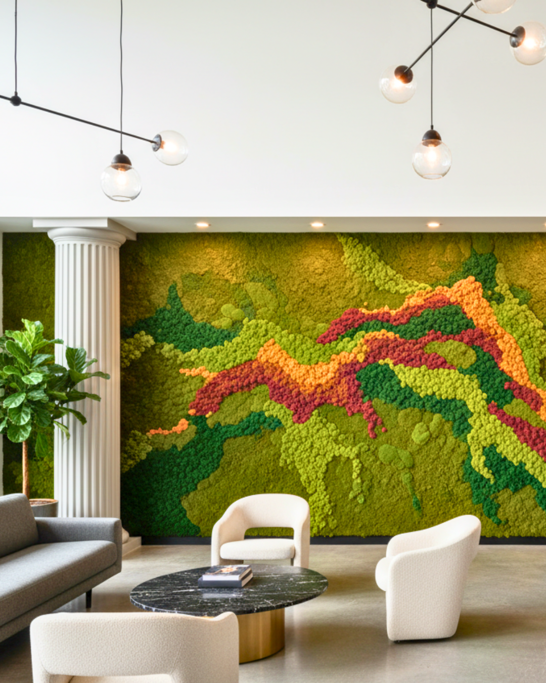 Review preserved moss types, color families, biophilic benefits, fire safety options, modular systems, and customization levels.