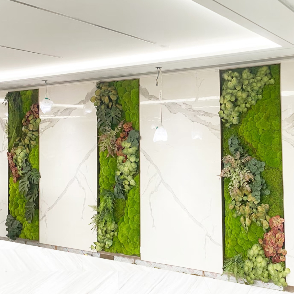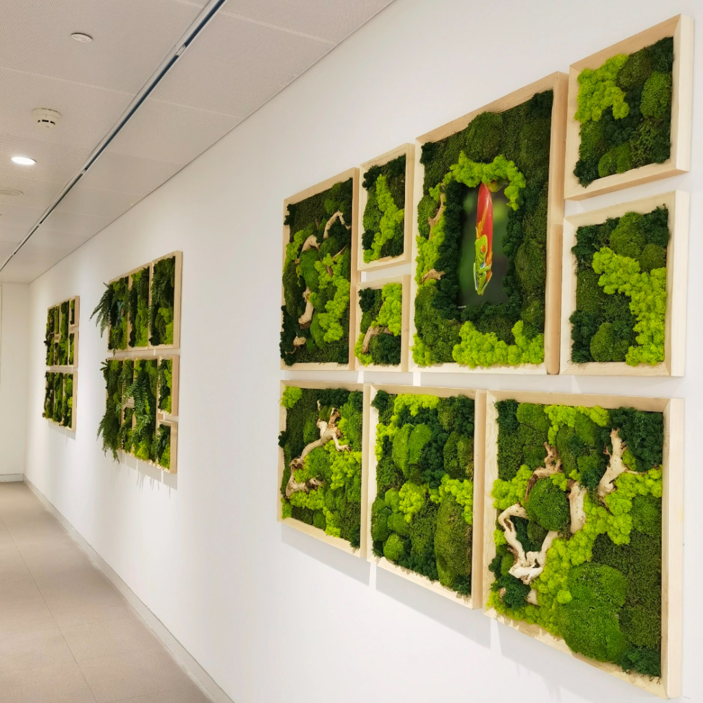 Explore preserved moss wall art designs crafted to inspire productivity and enhancing brand values