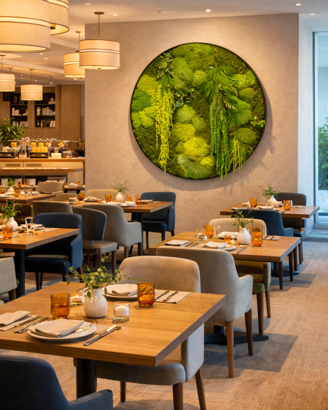 Moss wall art works well for reception areas, conference rooms, and amenity spaces when a full system installation isn’t needed. For larger architectural applications, explore AxioMoss™ and DiskMoss™ systems.