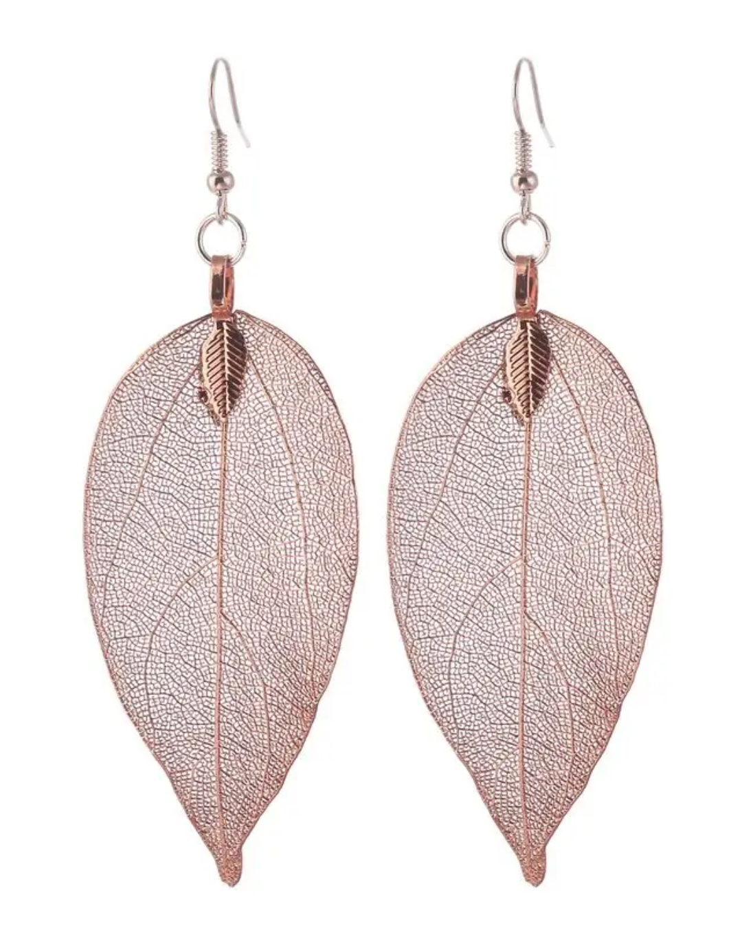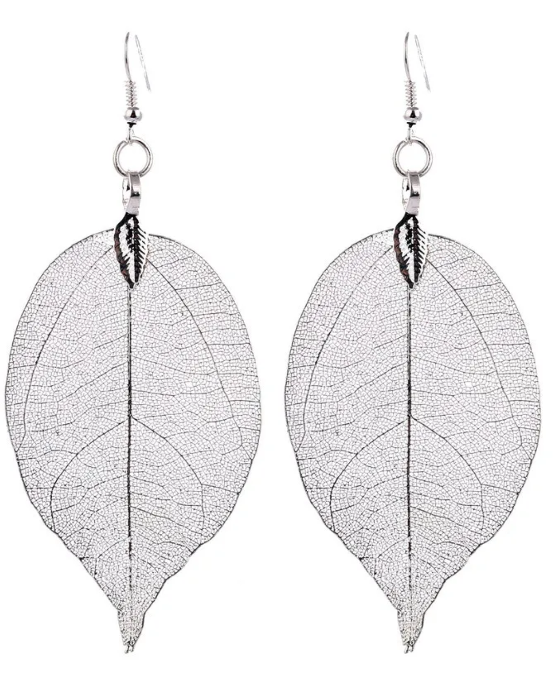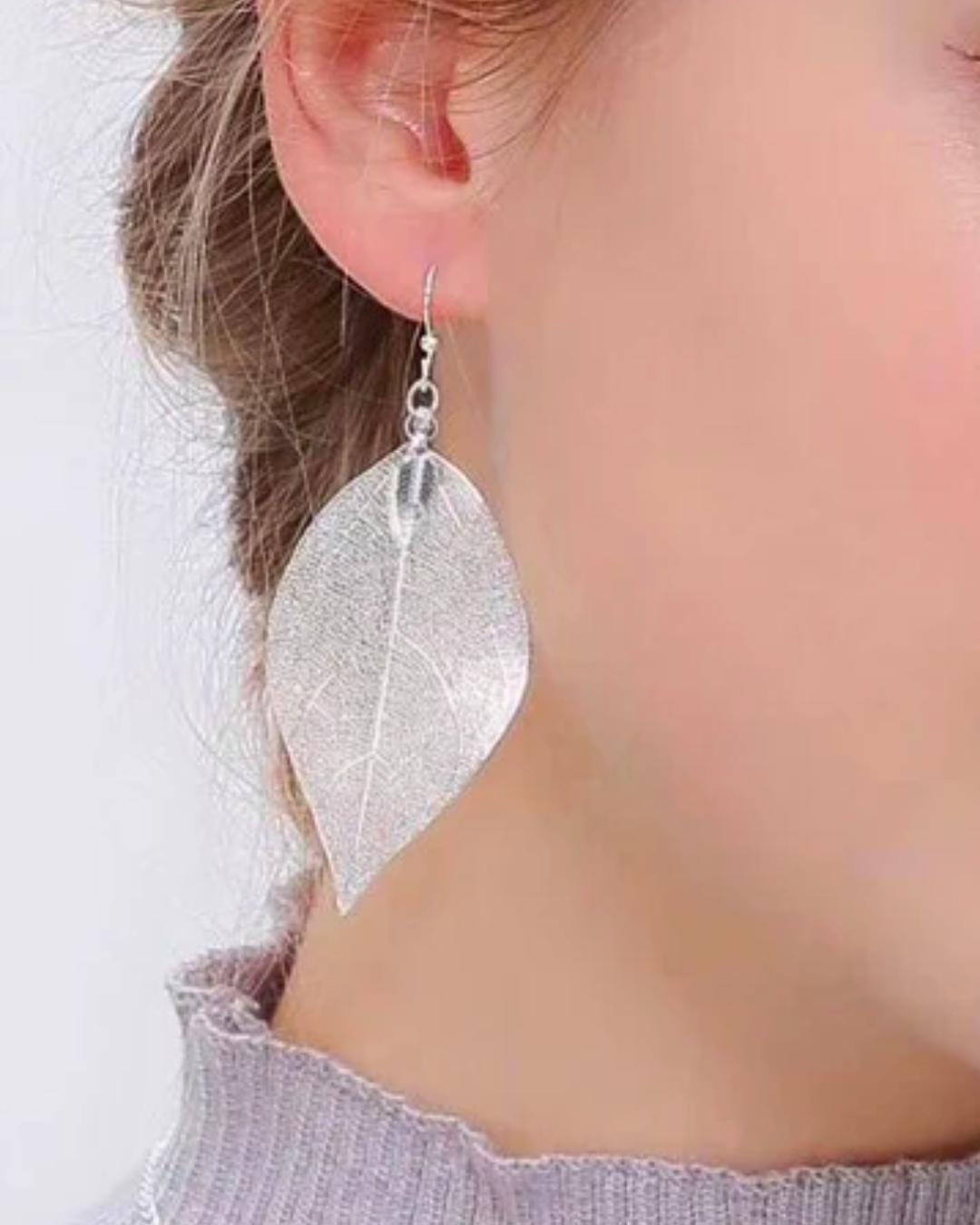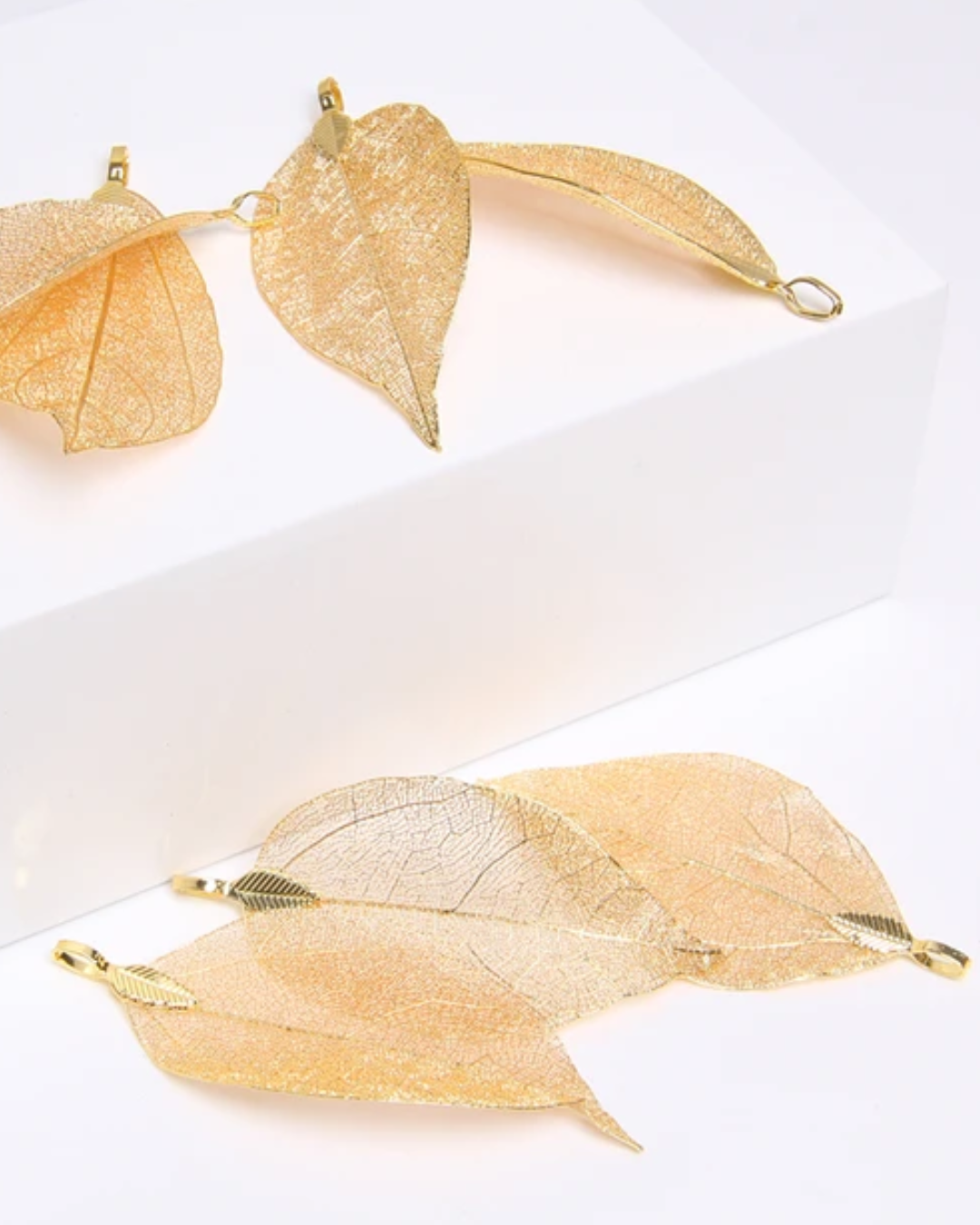 Crafted from genuine leaves, each pair is meticulously selected and preserved to capture the intricate details and unique beauty of nature. These leaves undergo a delicate process to retain their natural shape and texture, then are finished with a durable coating for longevity and shine. Available in multiple color finishes, these earrings add a touch of organic elegance to any outfit, making them perfect for those who appreciate the beauty of the natural world. Whether you're dressing up for a special occasion or adding a sophisticated accent to your everyday look, our Real Leaf Earrings are sure to enchant and inspire. Embrace the timeless appeal of nature with this exquisite accessory.