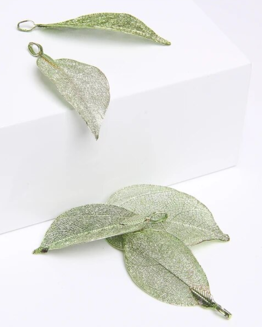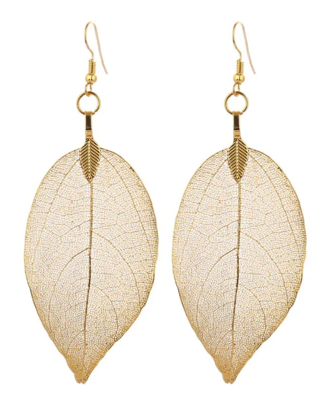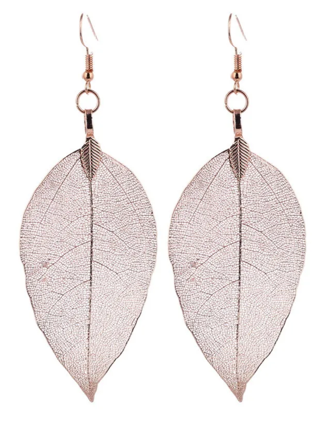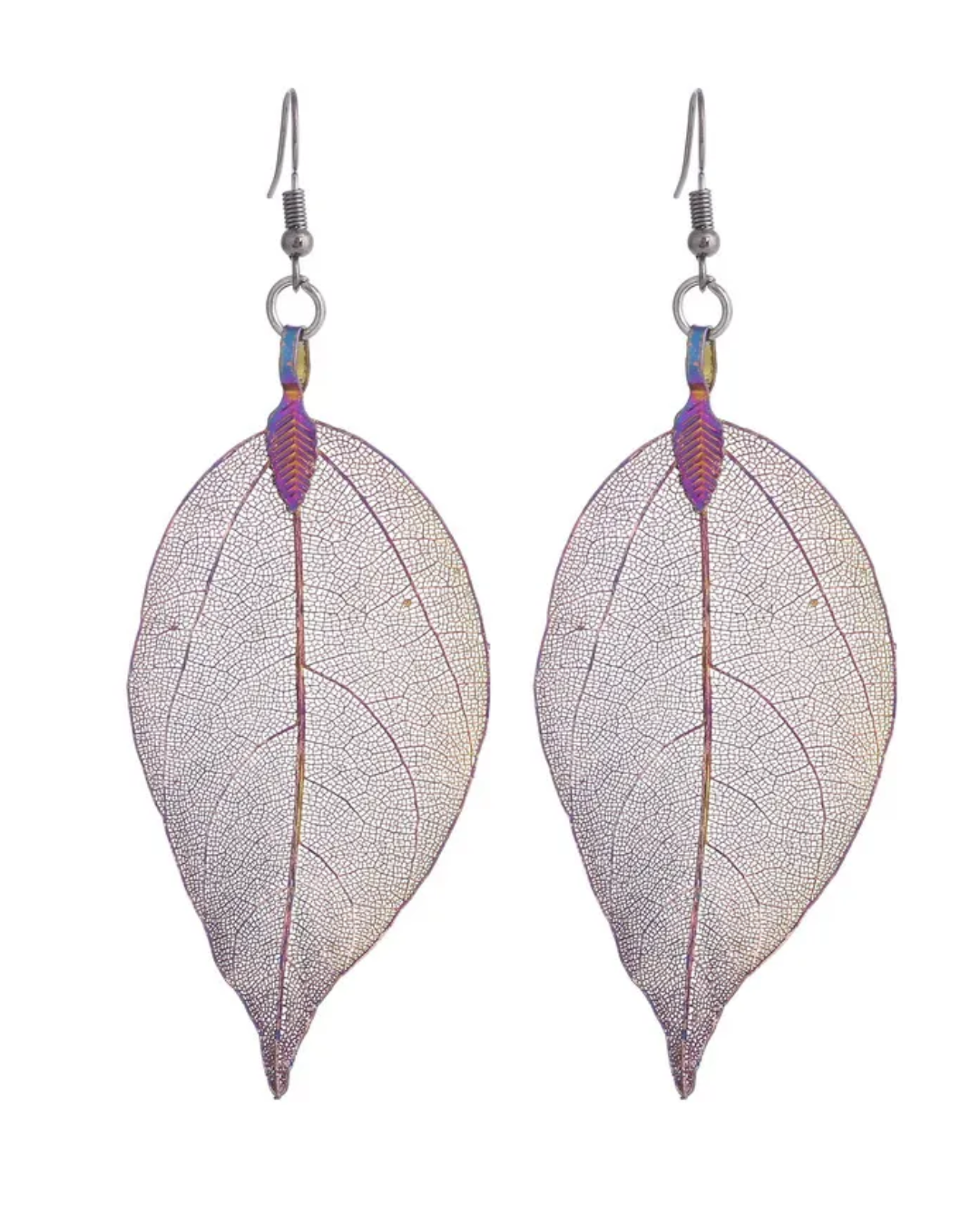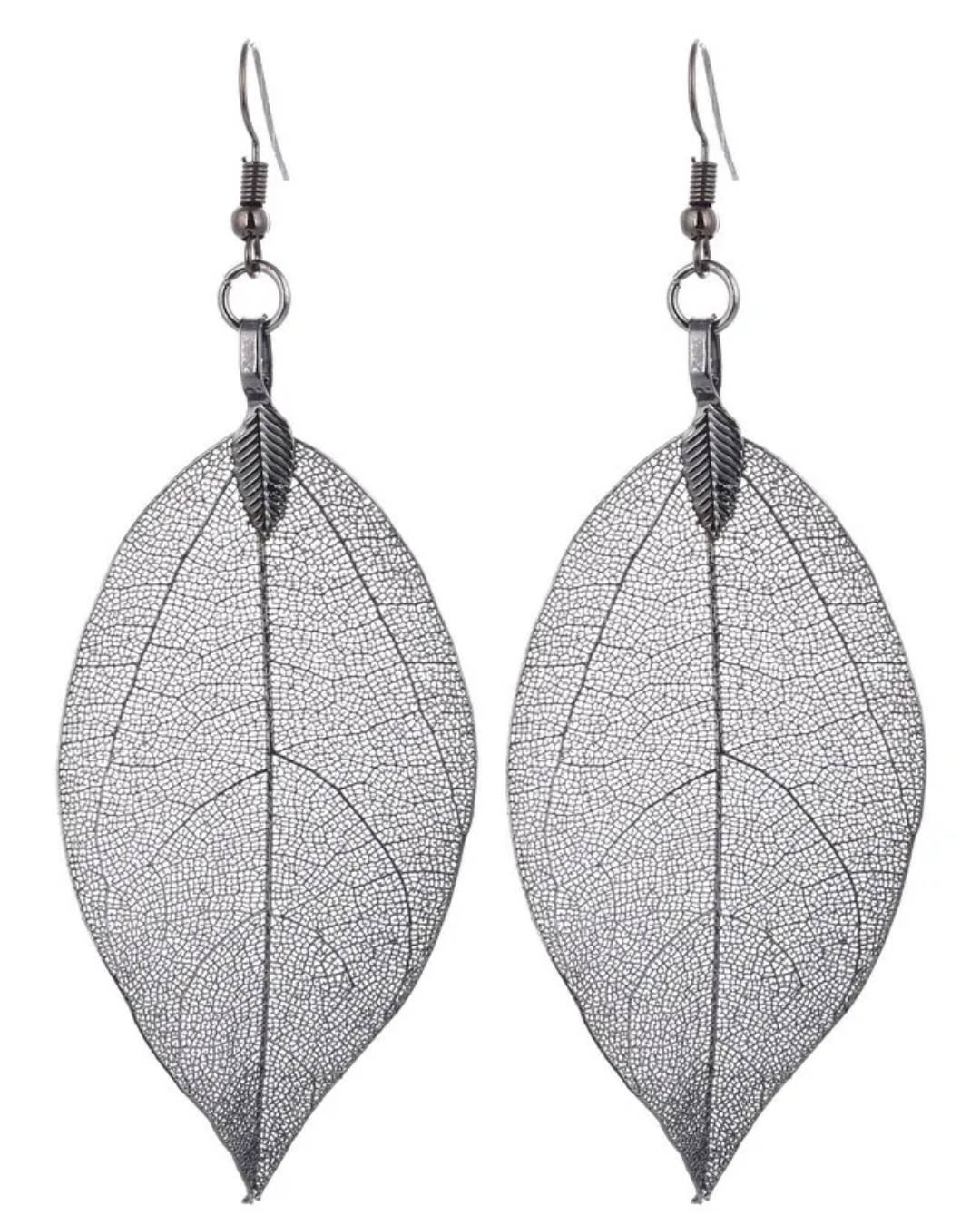 Crafted from genuine leaves, each pair is meticulously selected and preserved to capture the intricate details and unique beauty of nature. These leaves undergo a delicate process to retain their natural shape and texture, then are finished with a durable coating for longevity and shine. Available in multiple color finishes, these earrings add a touch of organic elegance to any outfit, making them perfect for those who appreciate the beauty of the natural world. Whether you're dressing up for a special occasion or adding a sophisticated accent to your everyday look, our Real Leaf Earrings are sure to enchant and inspire. Embrace the timeless appeal of nature with this exquisite accessory.
